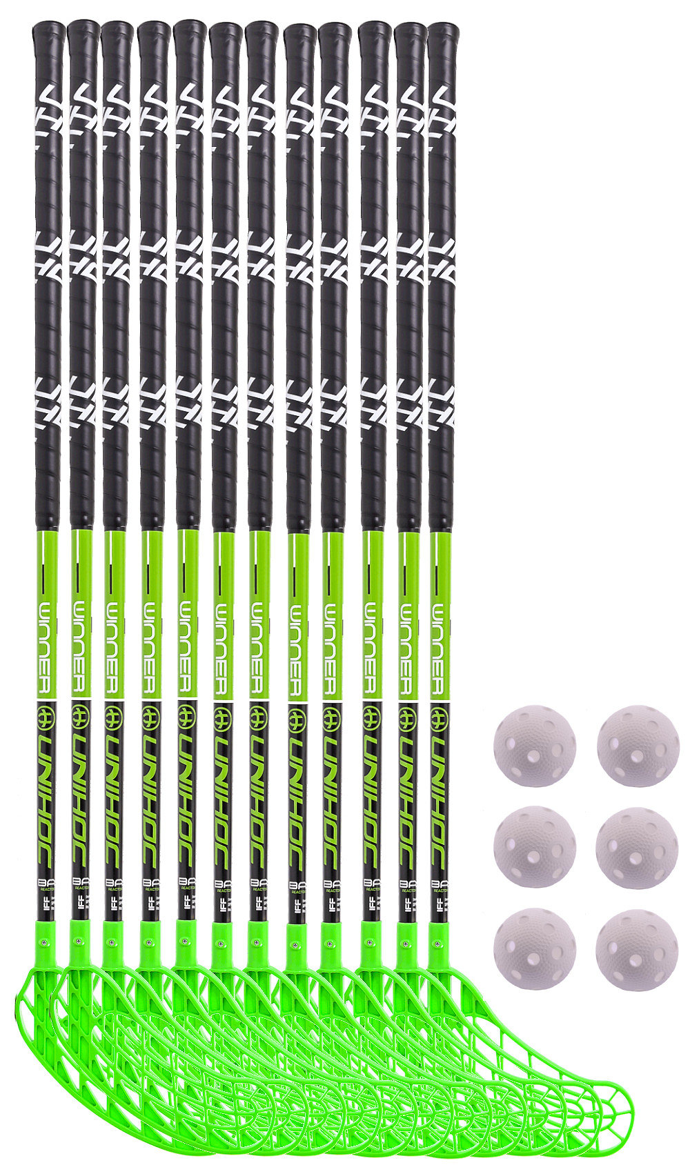 Florbalová sada Unihoc WINNER. Florbalové hokejky sú obojstranné. Sada je vhodná pre školy. Sada obsahuje 12 palíc Unihoc WINNER 6 loptičiek Unihoc Classic Kľúčové vlastnosti hokejok...