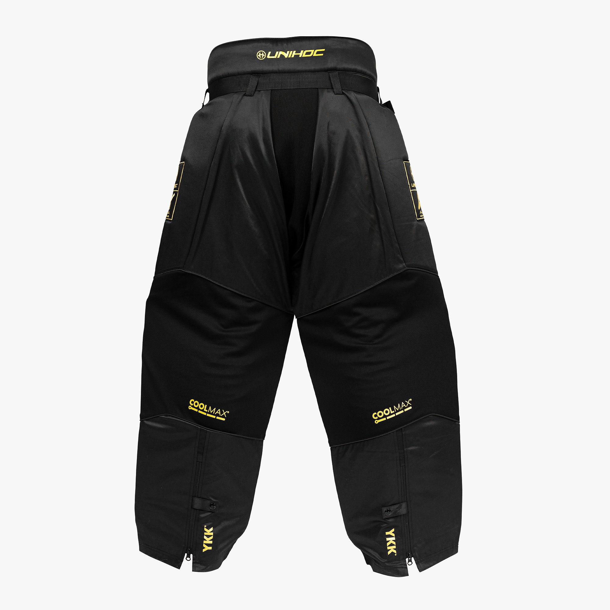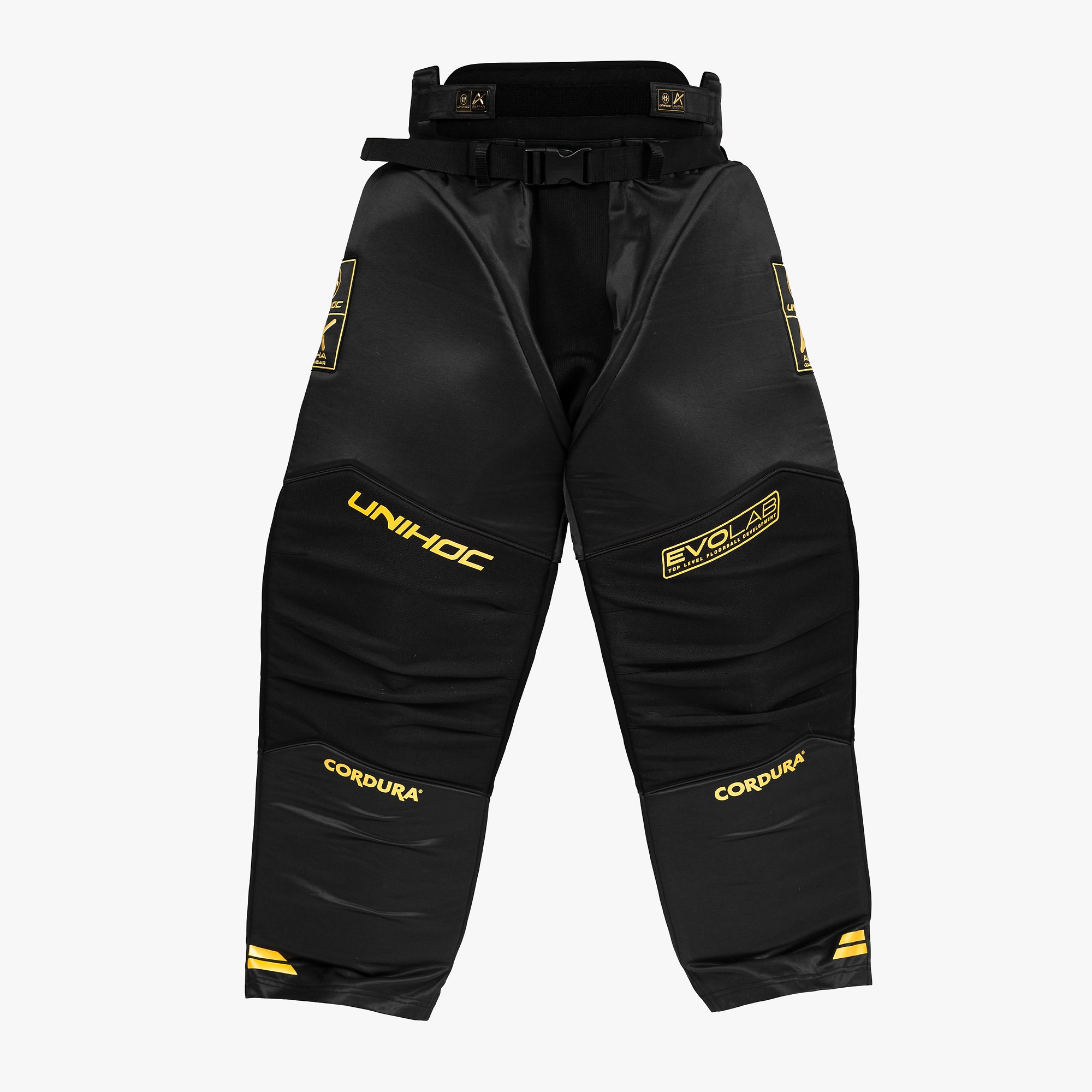 Spoločne s brankárskym dresom Unihoc Goalie sweater ALPHA EVOLAB black/gold a helmou Unihoc ALPHA PRIME EVOLAB black/gold budú tvoriť skvelý dizajnový celok.