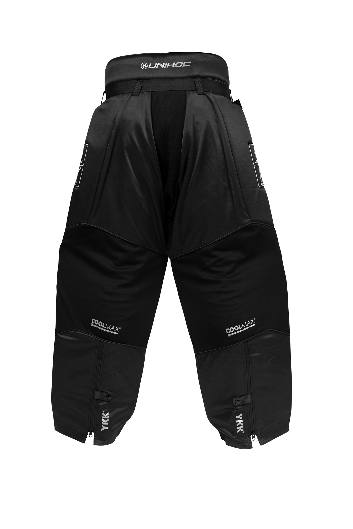 Zips určený pre úpravu chráničov je umiestnený na zadnej strane nohavíc. Je dostatočne dlhý, aby mal brankár ľahký prístup k chráničom kolien a zároveň, aby ho zips neobťažoval pri chytaní. Zips je opatrený úpinkou, ktorá zabraňuje rozopnutie nohavíc počas hry.